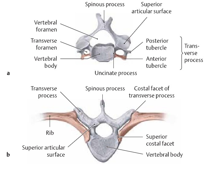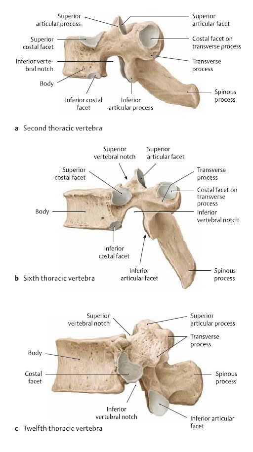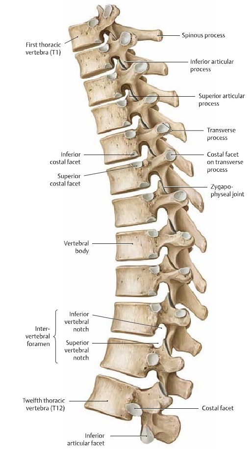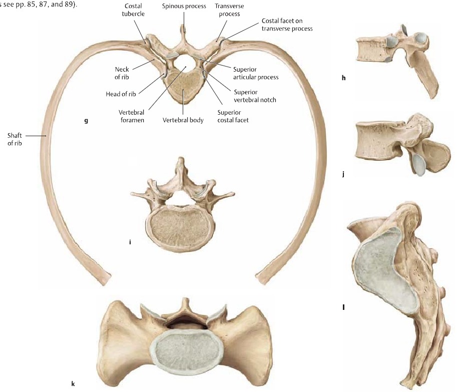 4. 흉추 특징 : costal facet, 극돌기가 아래로 경사