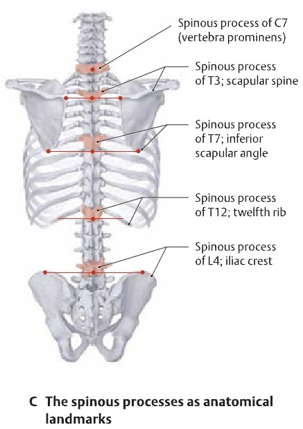 작성자이영호 작성시간 13.11.28 1. 척추 지표 : C7극돌기 튀어나옴 T3극돌기는 견갑극, T7극돌기는 견갑 하각, T12극돌기는 12번늑골 L4는 장골능