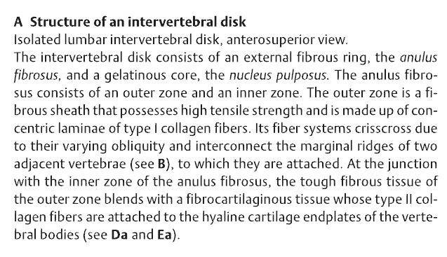 작성자이영호 작성시간 13.11.28 7. 추간판 : 섬유륜과 수핵(물쿠션처럼 작용), hyaline catilage, 순간적 추간판 부하는 수핵과 섬유륜의 충격흡수에 의해 작용하고 지속적 부하는 디스크로 부터 액체가 점차적 지속적 빠져나가 디스크 높이 감소하고 척추사이 가까워짐