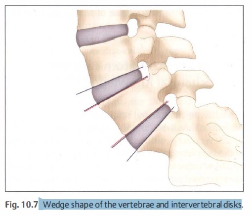 요추 전만은 wedge shape인 척추뼈와 디스크때문