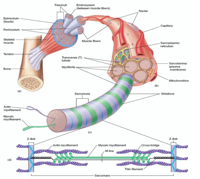 각각의 근육에는 수백개에서 수만개의 근섬유(muscle fiber)를 포함함. 근섬유를 둘러싼 띠가 fascicles(근속)