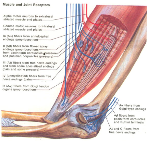 Type 1a 섬유는 핵주머니 섬유와 핵사슬 섬유에 연결되어 있음. 이러한 연결은 고리나선 신경종말이라고 함. "annulospiral endings"
