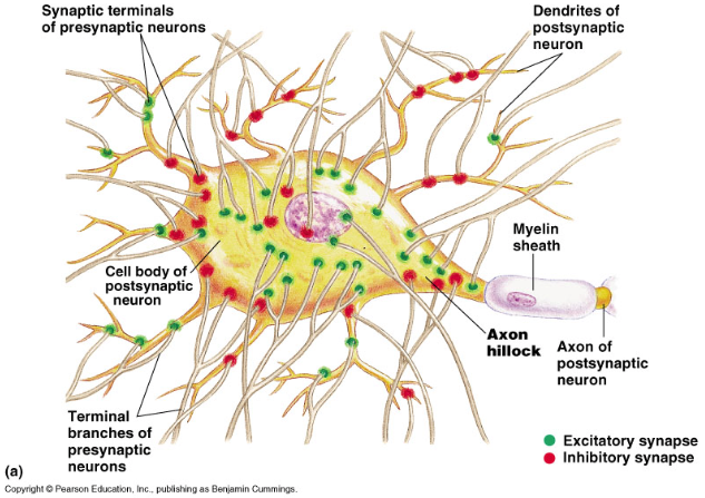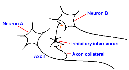 - Some of the branches of the I-a axons synapse with inhibitory interneurons in the spinal cord. These, in turn, synapse with motor neurons leading back to the antagonistic muscle, a flexor in the back of the thigh. By inhibiting the flexor, these interneurons aid contraction of the extensor. 일부의 1a축삭 섬유는 척수의 억제성 사이신경원과 시냅스를 이룸. 이 시냅스 결과 길항근에 작용하여 근육을 이완함.