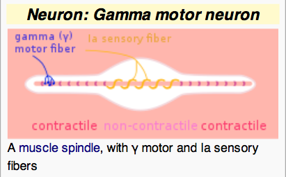 정적인 감마 활성은 수용기-bearing 근육의 예견된 짧아짐과 길어짐의 일시적인 본보기임. 동적인 감마 활성은 갑자기 켜졌다 꺼짐. 의도한 움직임으로부터 출발과 근육 늘어남의 시작 ... sensitizing spindle afferent....