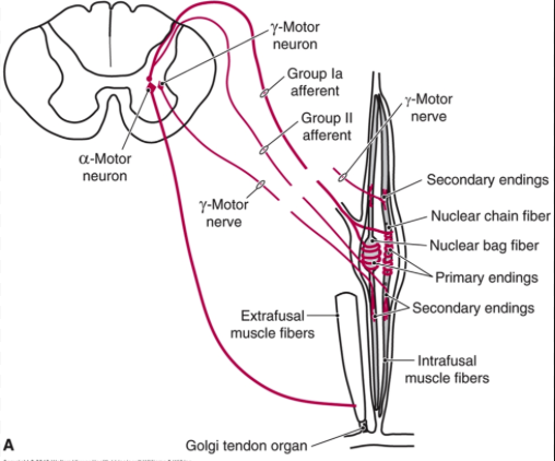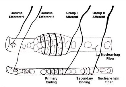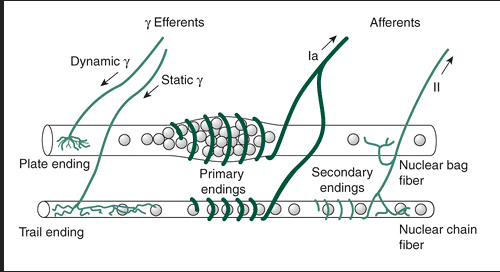 - dynamic nuclear bag fiber는 동적 감마운동신경원에 의해서 지배받고 1a 감각을 받아들임. 게다가 동적감마운동신경원의 발화는 동적인 nuclear bag fiber에 있어서 느슨함을 제거항 1a 섬유를 가져다 발화 역치에 가깝게 함.