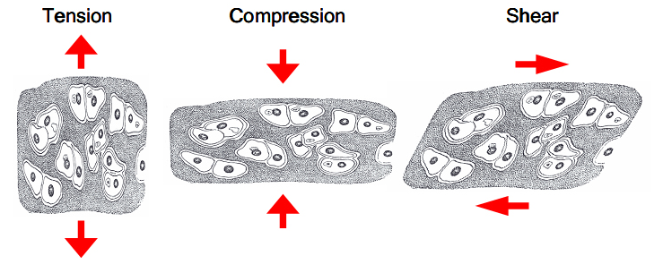 One of the main mechanical functions of articular cartilage is to act as a low-friction, load-bearing surface. Due to its unique location at joint surfaces, articular cartilage experiences a range of static and dynamic forces that include shear, compression and tension. These mechanical loads are absorbed by the cartilage extracellular matrix (ECM), where they are subsequently dissipated and transmitted to chondrocytes (cartilage cells).