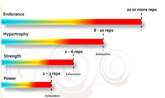 - 근형질 비대, 바디빌더 근육비대, 1RM의 70% 8~12회, 60%힘으로 12회 이상 반복운동