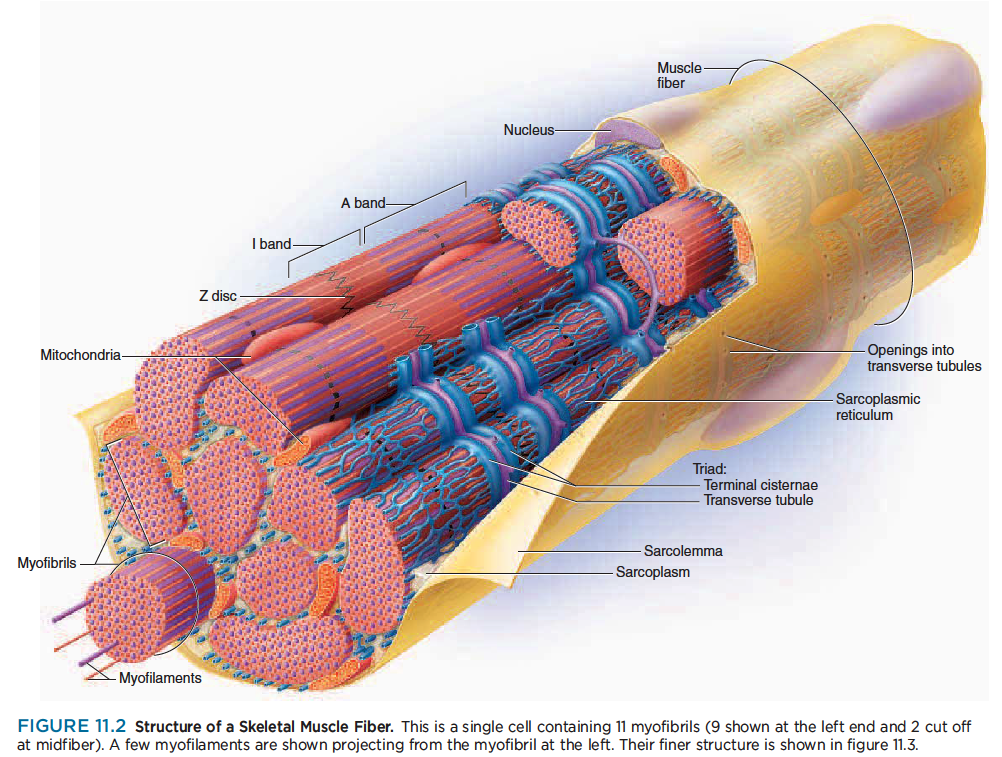In order to understand muscle function, you must know how the organelles and macromolecules of a muscle fiber are arranged. Perhaps more than any other cell, a muscle fiber exemplifies the adage, Form follows function. It has a complex, tightly organized internal structure in which even the spatial arrangement of protein molecules is closely tied to its contractile function.