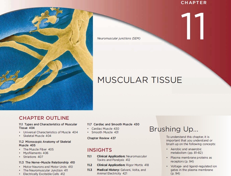 이 챕터에서는 분자생물학, 세포학, 조직학 수준의 근육의 구조, 수축, 대사에 관한 탐구.