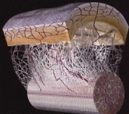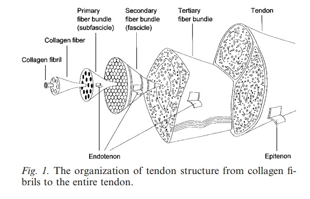 Removal of the epiligament exposes the fibrous architecture of the ligament which is further organized hierarchically into