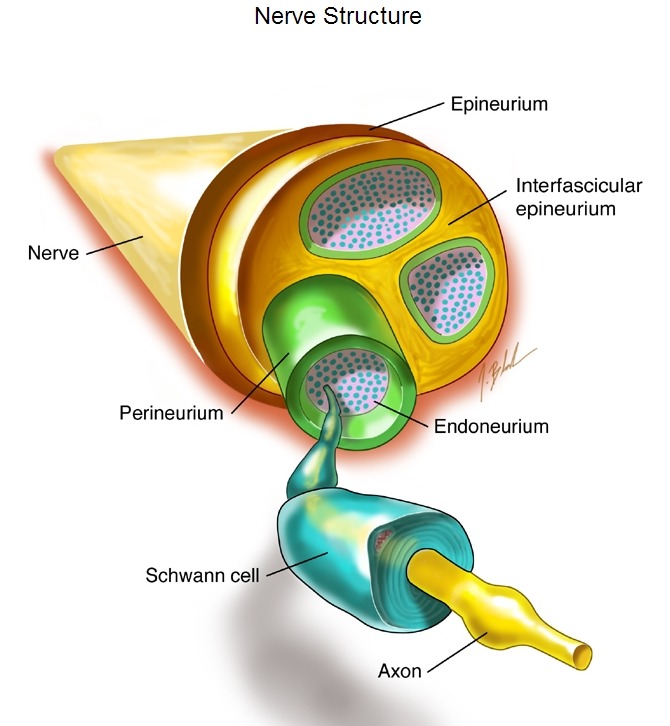 - 3개의 층(epineurium, perineurium, endoneurium)으로 구성됨