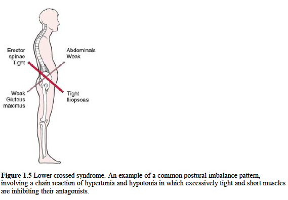 Different muscles contain varying proportions of slow and fast muscle fibres. Slow fibres maintain posture; they activate more easily, are capable of more sustained contraction, and tend to become shortened and tight. Fast or phasic fibres give dynamic, voluntary movement; they fatigue more rapidly and tend to weakness. Postural and phasic muscles are often antagonistic … Hypertrophy and atrophy occur at the same time in antagonistic muscles, which may lead to changes in resting length, with contracture of the postural muscles and stretching of the phasic muscles.