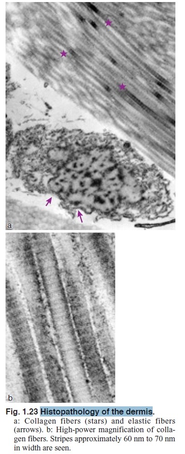 Collagen fibers account for 70% of the weight of dry dermis (Fig. 1.23) and appear white to the naked eye. The collagen