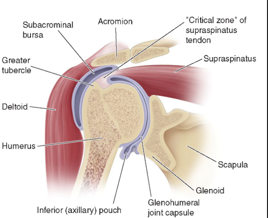 overuse는 점액낭의 마찰열에 의한 염증을 유발한다.