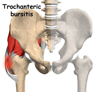- Trochanteric bursitis, giving pain over lateral aspect of hip