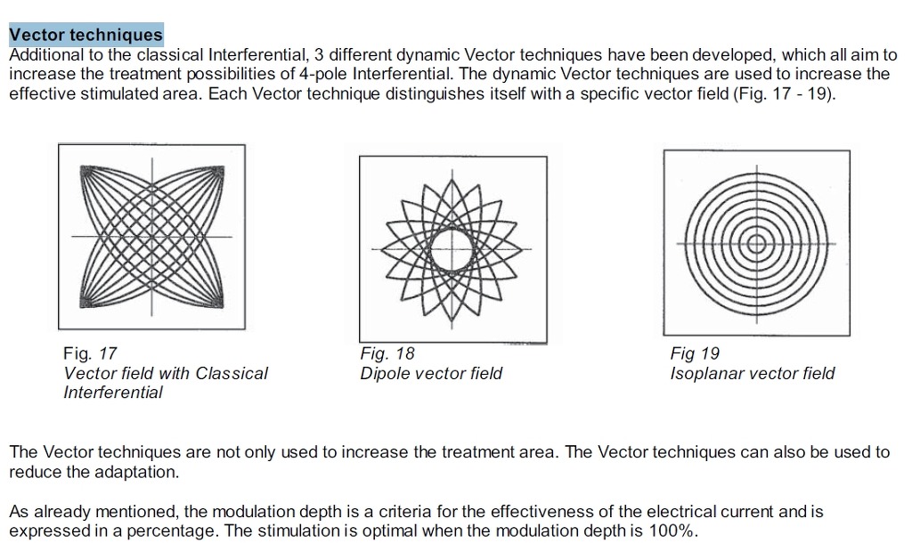 - TENS는 두개의 medium frequency two pole vector장비다.