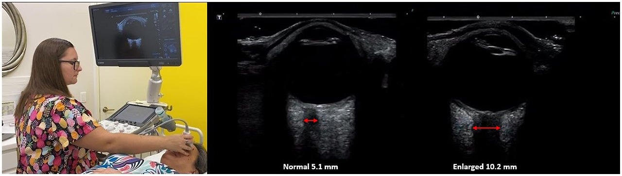 Figure 8. Ultrasound of eye to measure optic nerve sheath diameter, which is used as a marker for intracranial hypertension (increased brain pressure).