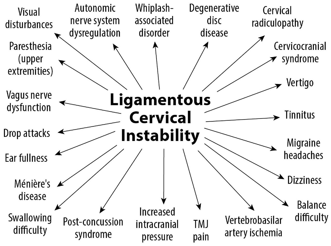 Figure 4. The many potential syndromes and symptoms caused by ligamentous cervical instability.