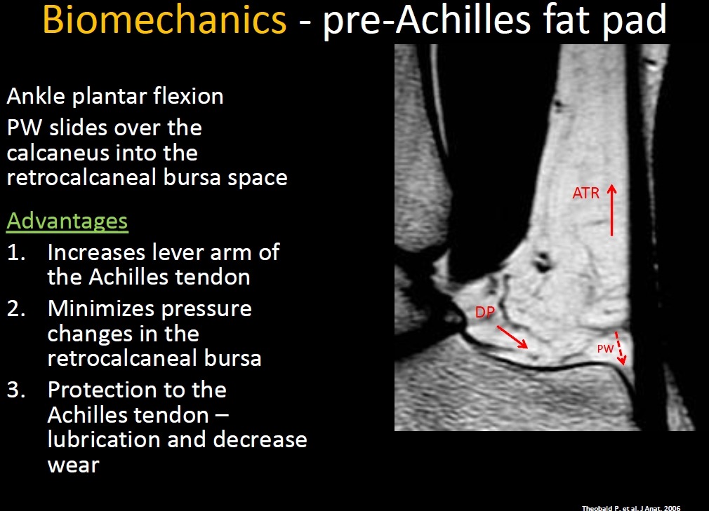 pre-Achilles fat pad = 아킬레스건과 족저근막의 장력관계에서 중요한 완충장치
