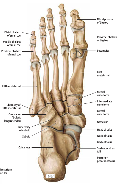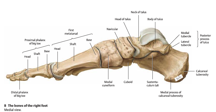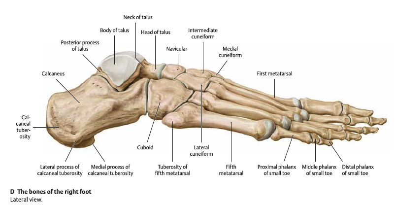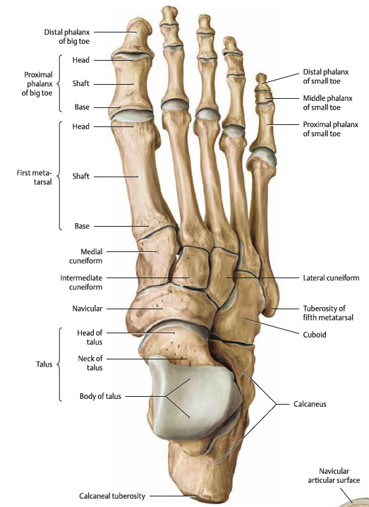 경골 - 거골 - 종골 - 주상골과 입방골, 설상골 - 중족골