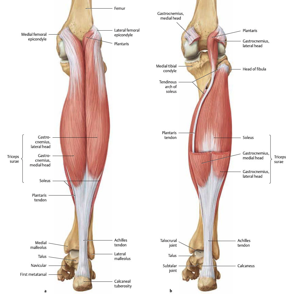 아킬레스 건염, 아킬레스 건파열시 스트레칭과 재활치료는 반드시 비복근과 가자미근을 따로따로 시행해야 한다.