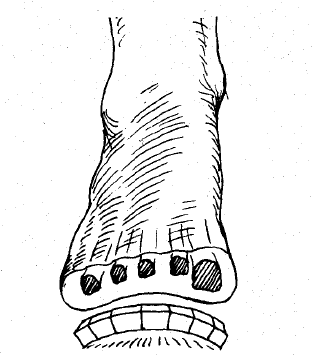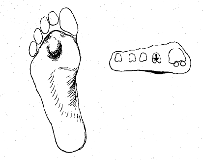 △ 왼쪽: 못(callosities)은 발허리뼈머리 밑에 잘 생긴다.