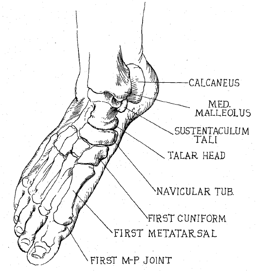 △ 발과 발목 관절 안쪽면의 골격 해부