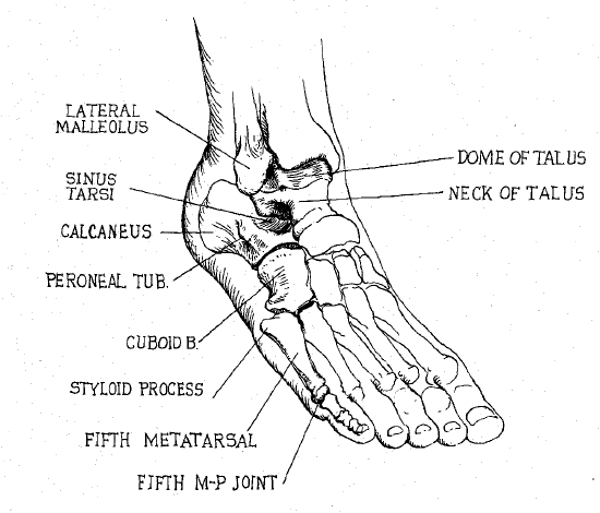 이 오목한 부위는 안쪽 발바닥 쪽으로 달리고 있는 긴종아리근힘줄(장비골근건, preoneus longus tendon)이 지나가고 있다.
