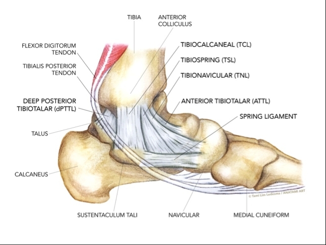 내측 삼각인대는 3개 층으로 구성. 완전 파열은 거의 없음.