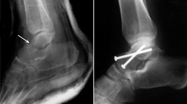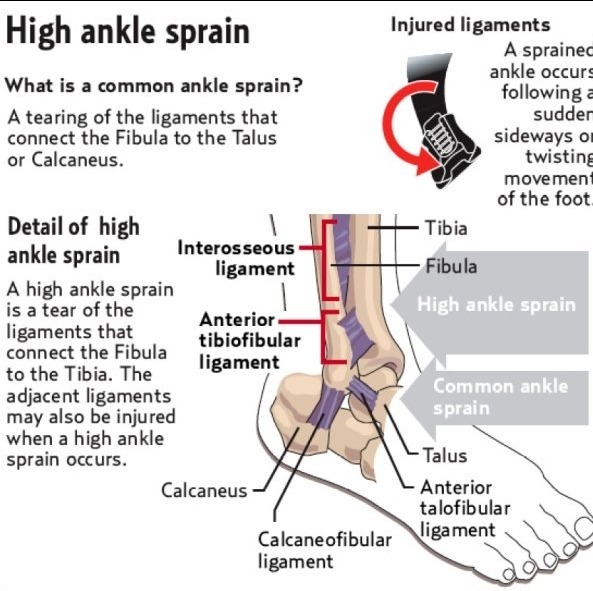 tibia -fibular를 고정한 이유는 anterior tibiofibular ligament(high ankle sprain)가 손상을 입었기 때문. 6주후에 tibia-fibular를 고정한 나사는 제거해야 함. 4-6주동안 체중부하를 주면 안됨.