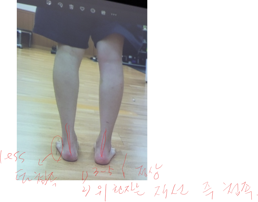 - 양측 모두 아치가 높은 상태, 우측이 좀더 높은 상태(첨족상태)