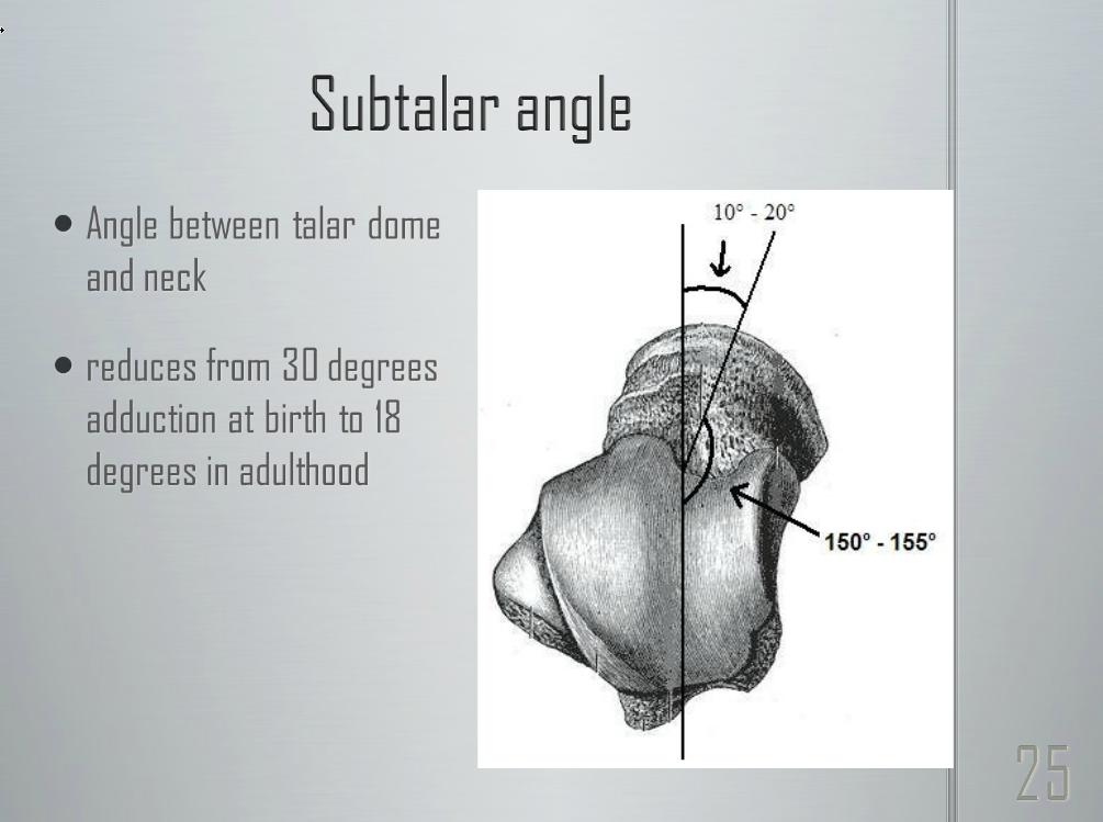 검사법 subtalar flexibility test - 양발로 서서 내회전 힘을 가해서 어느정도 회전하는지 검사