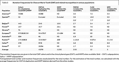 Table 2 Mutation frequencies for Charcot-Marie-Tooth (CMT) and related neuropathies in various populations