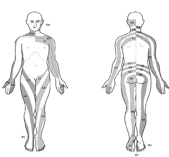 Our findings demonstrate that current dermatome maps are inaccurate and based on flawed studies. After selecting the best available evidence, a novel evidence-based dermatome map was constructed. This represents the most consistent tactile dermatomal areas for each spinal dorsal nerve root found in most individuals.