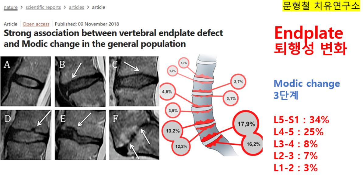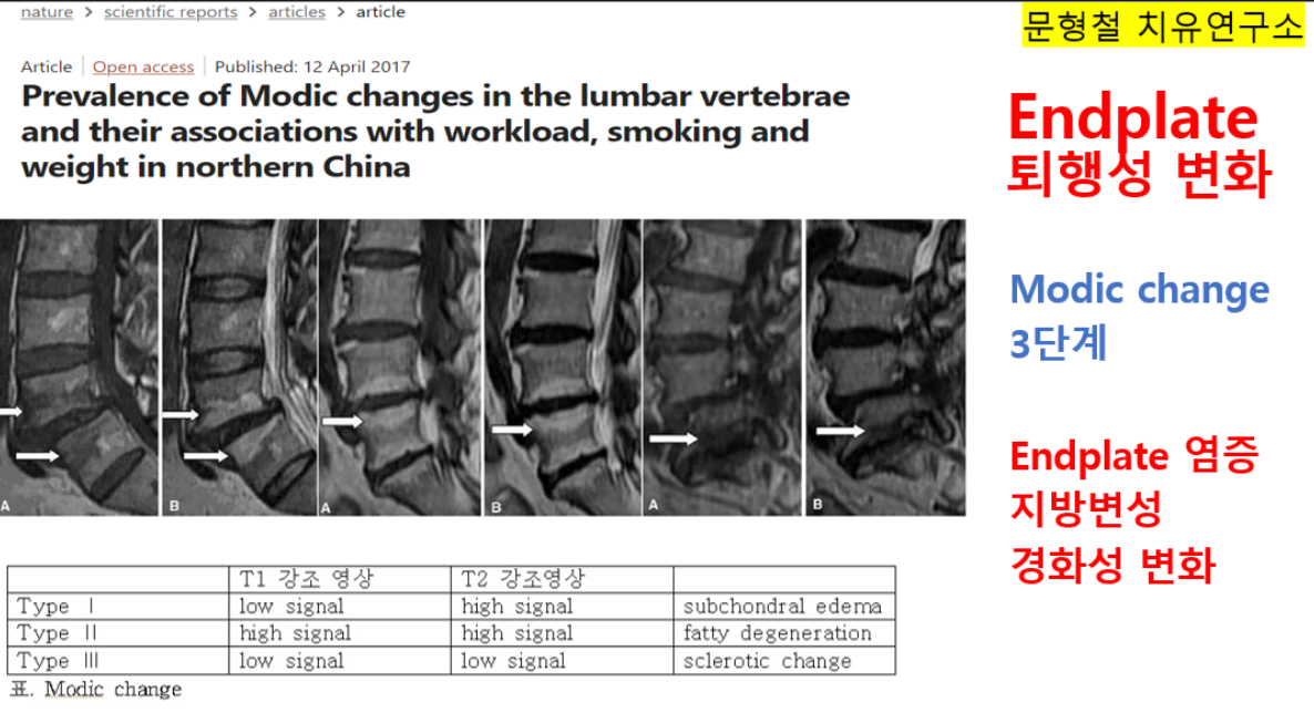 허리디스크의 상태와 예후를 mri로 판단하는 중요한 한가지가 골단판 퇴행성변화 3단계 과정(modic change)입니다.