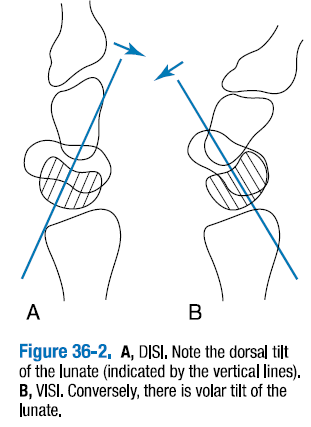 DISI와 VISI는 손목의 측면 방사선 사진 상에서 월상골의 기울임에 의한 수근골의 불안정성을 의미한다. DISI는 월상골이 손등 방향으로 기울어져 있는 것을 말하며, VISI는 월상골이 손바닥 방향으로 기울어져 있는 것을 말한다.