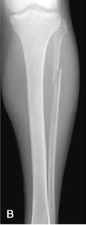 △ B는 Maisonneuve 골절로, 골간막의 파열과 비골 상단 1/3 부위의 골절을 나타낸다.