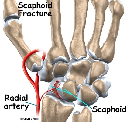 △ Scaphoid fracture (이미지 출처 : http://www.methodistorthopedics.com/scaphoid-fracture-of-the-wrist)