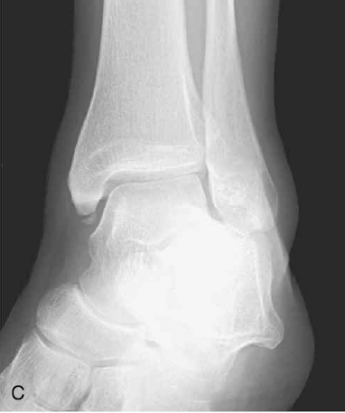 △ C는 Maisonneuve 골절로, 내측 복사뼈 골절 동반된 사진이다.