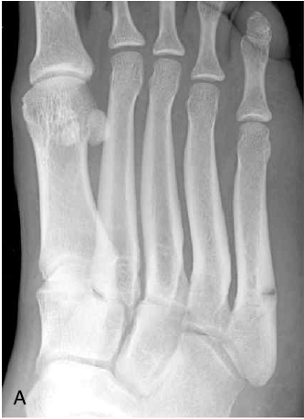 △ A는 존스 골절(Jones fracture). 제5중족골의 기저부의 횡단 골절에 해당한다.