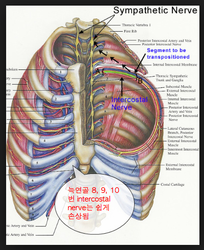 - 홀름은 intercostal nerve의 해부학적 연구를 시행함.8, 9, 10의 늑연골은 intercostal nerve의 끝가지와 연결됨.