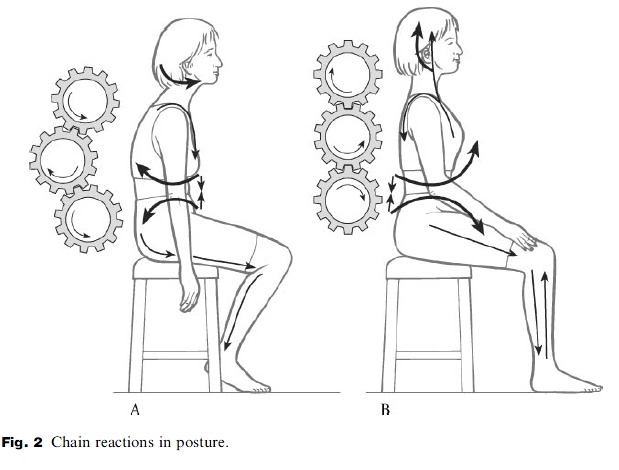 - 현대사회에서 앉기(sitting)는 상체자세(upright posture)에 명백한 영향을 초래. 특히 mid-thoracic부위는 좀더 후만(kyphotic)되는 방향으로 진행되는 경향