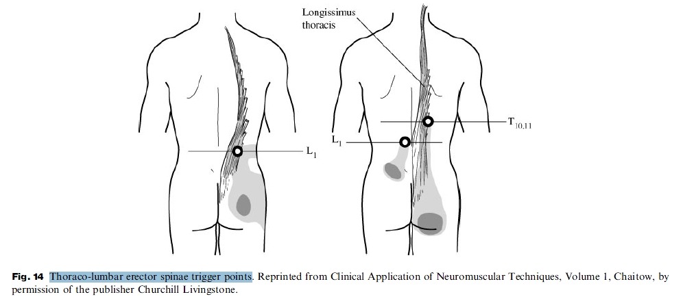 - T/L erector spinae muscle 또는 T10-L5 joint의 referred pain은 T/L erector spinae muscle의 overactivity와 연관됨. dorsal erector spinae의 억제와 combined되어.