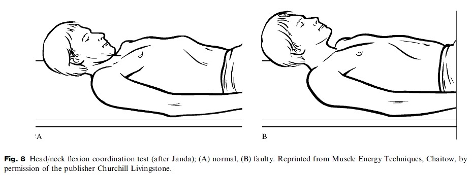 involving shortened suboccipitalis combined with overactive SCM and inhibited deep neck flexors (DNF) (Fig. 7). A simple screen is to perform the head/neck flexion test (Fig. 8). .