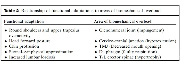 Myofascial pain, muscular overload, and joint strain are clinically related. With postural change such as increased thoracic kyphosis certain muscle imbalances in other regions predictably occur and are easily indentifiable. In many cases when thoracic kyphosis increases other joints such as the GH or upper cervical find themselves in new