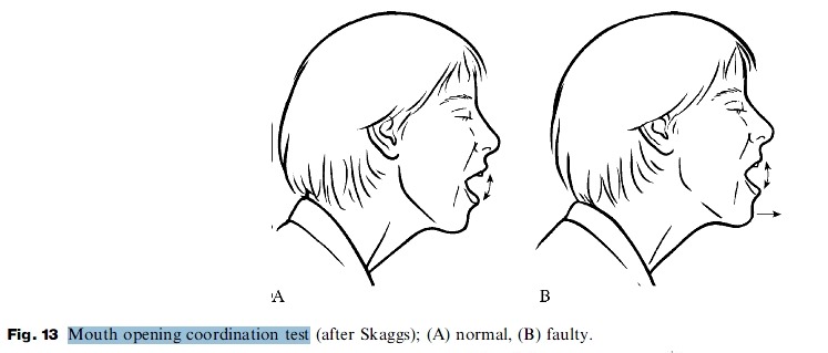 - simple screening test는 그림 13과 같이 mouth opening test를 시행.