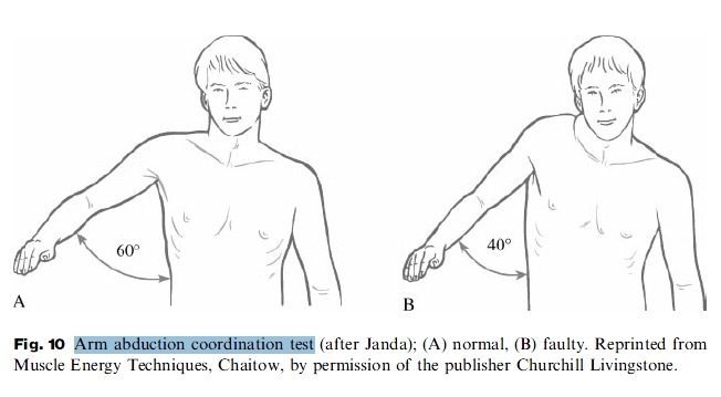 - simple screening test는 그림 10의 arm abduction test를 시행함.