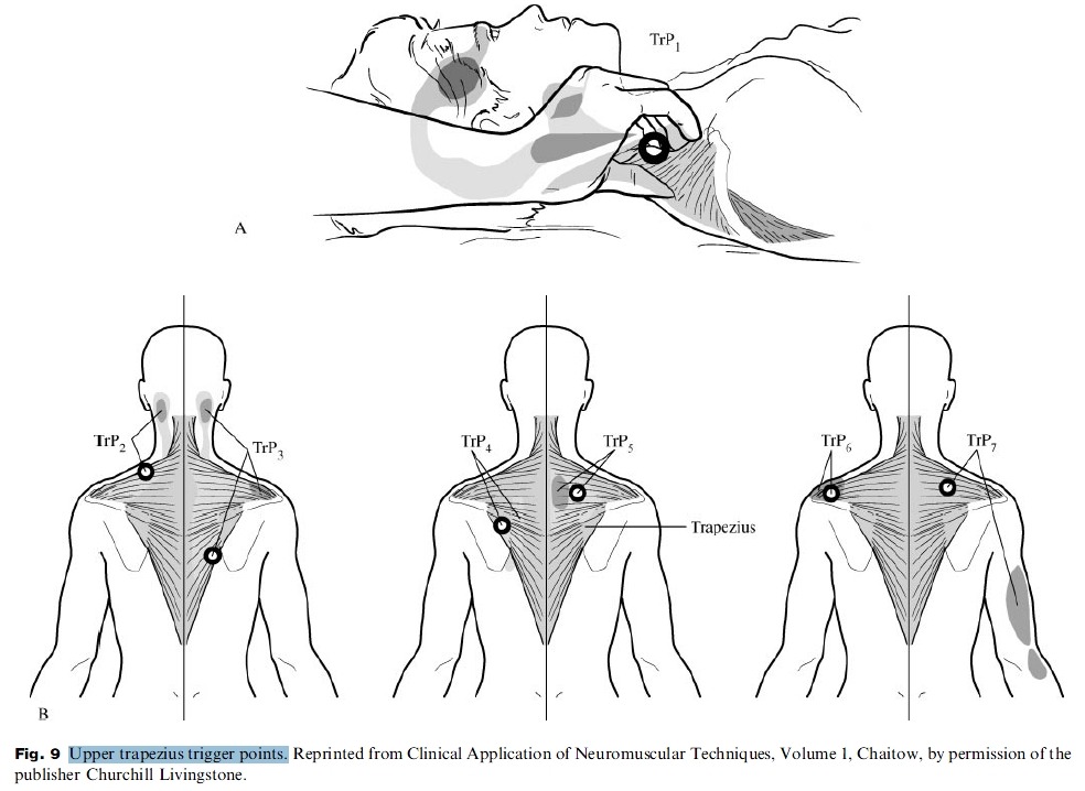 - 상부승모근 또는 대흉근 또는 GH joint로부터의 referred pain은 overactive된 상부승모근과 억제된 하부승모근, 척추기립근과 연관된 짧아진대흉근과 관련된 muscle imbalance와 관련이 있음.