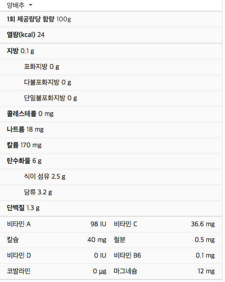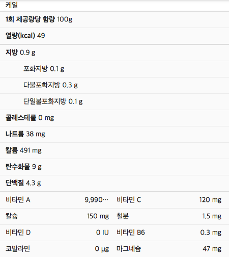 식물성 탄수화물이므로 약간의 포도당이 있음(케일 9g, 양배추 6g).