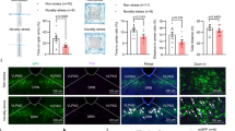 Formalin (2%, Sigma), PEG (30%, average relative molecular mass 1,500, Acros Organics), CFA (50%, Sigma), LiCl (12.5 mg ml−1, Sigma), CNO (0.1 mg ml−1, Tocris), ghrelin (60 μg ml−1) and diphtheria toxin (0.5 mg ml−1, List Labs) were diluted in normal saline. Formalin and CFA were injected subcutaneously in the hindpaw at a volume of 20 μl (formalin) or 30 μl (CFA). PEG was injected subcutaneously at a volume of 20 μl per g body weight. Ghrelin, LiCl and CNO were injected intraperitoneally at a volume of 10 μl per g body weight. Diphtheria toxin was injected intramuscularly at a volume of 5 μl per g body weight. Mice received 3 diphtheria toxin injections under light isoflurane anaesthesia with 48 h between injections.